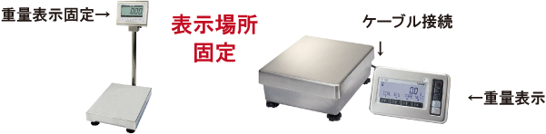 はかりの重量表示器は、位置が固定されていたり、ケーブルで接続されているので、