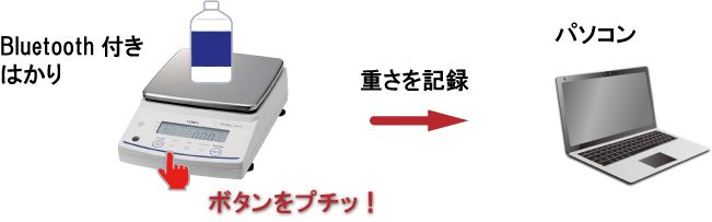 ボタンを押すだけでパソコンに記録するには、Bluetooth付きのはかりとパソコン、そして重量データ